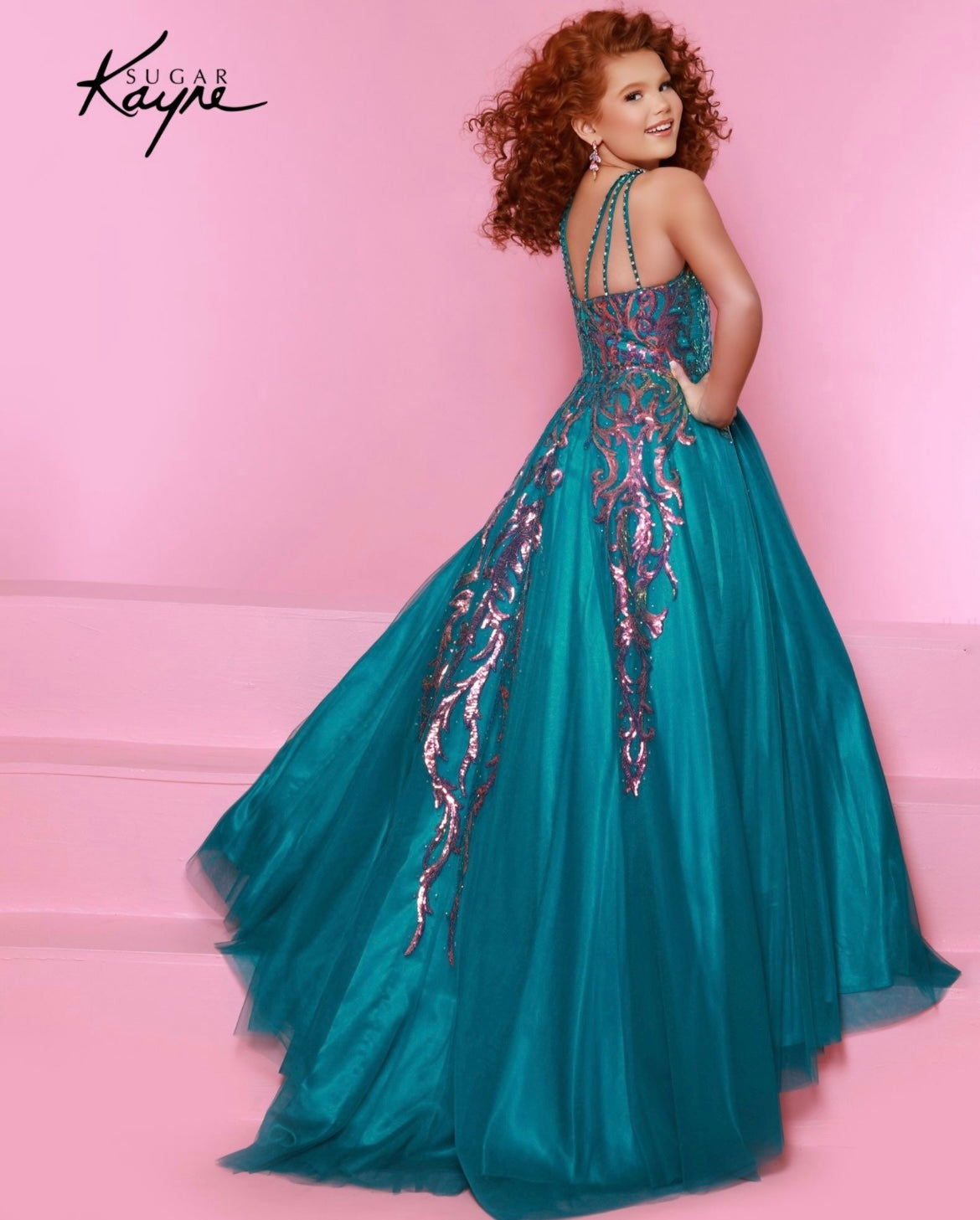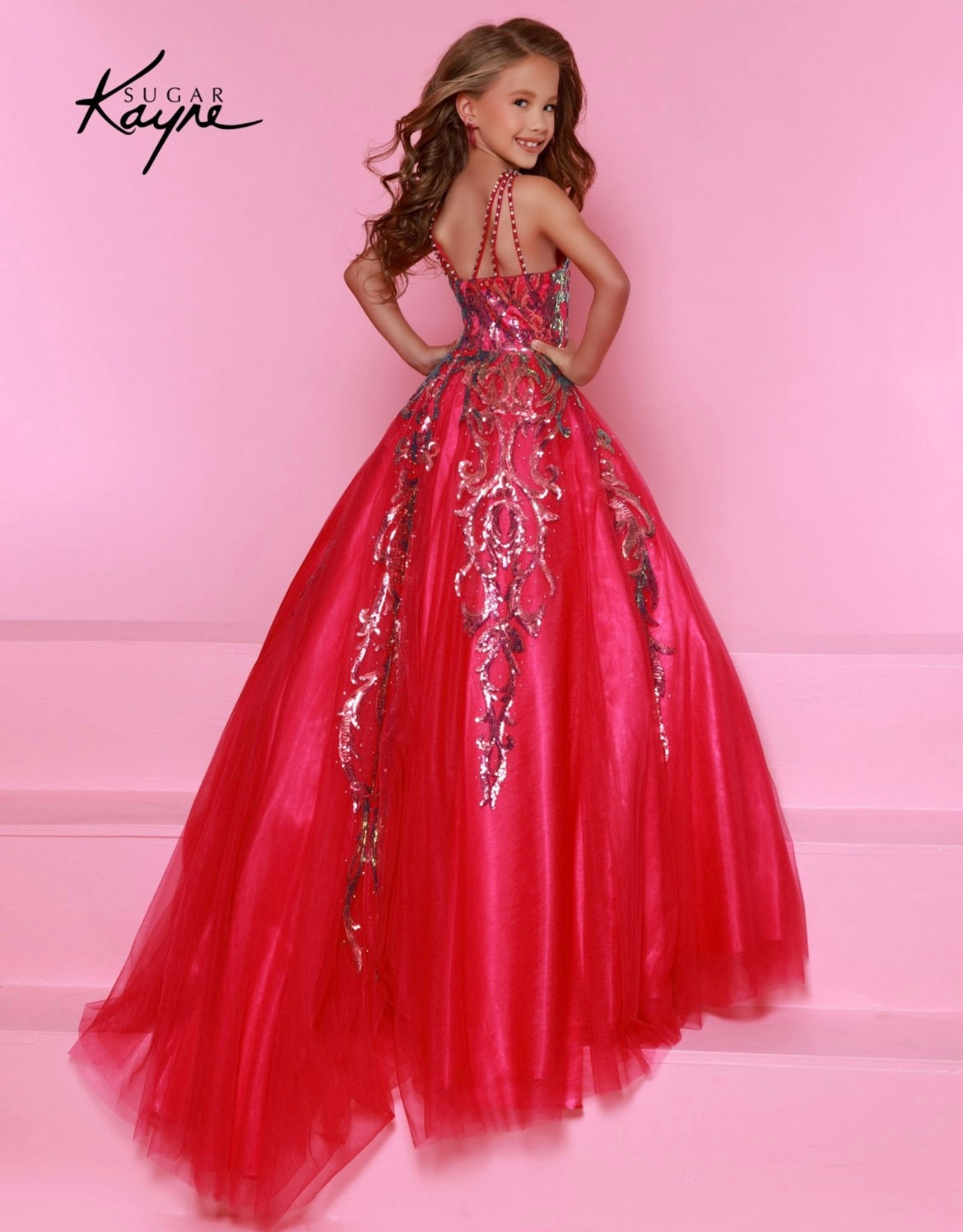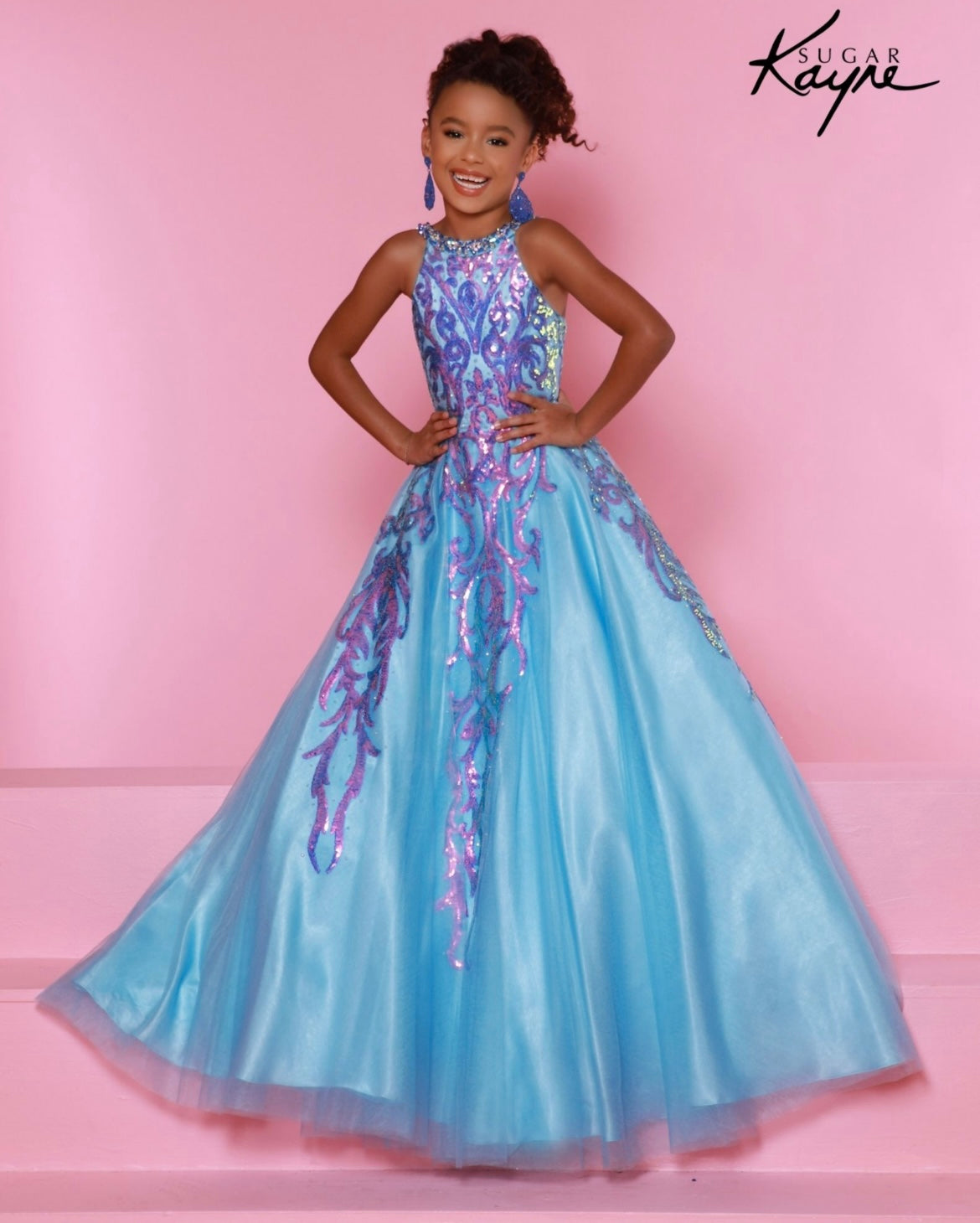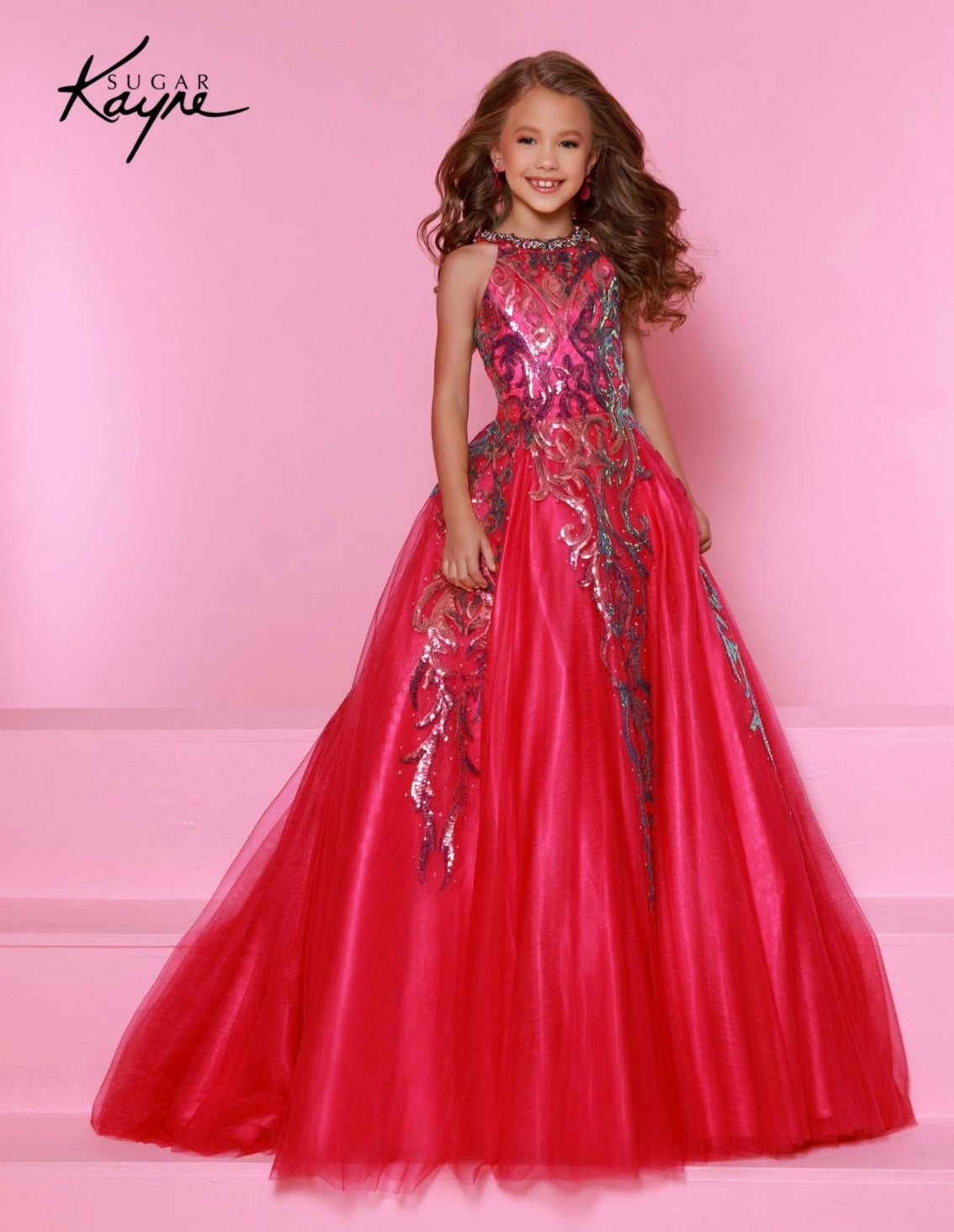 Glittering Grace! This sequin mesh ballgown and halter style neckline ensure you will captivate the audience with grace and style!
