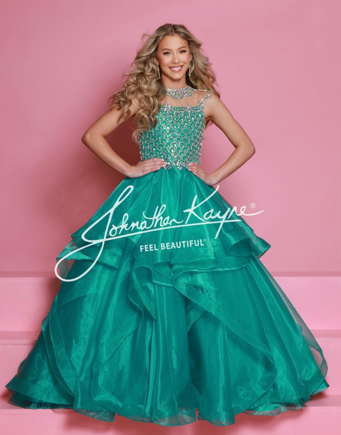 Channel your inner princess in our enchanting ballgown, designed with delicate ruffles and a beautiful embellished beaded bodice. With it’s flowing skirt and flattering silhouette, this gown is sure to make you feel like ROYALTY!